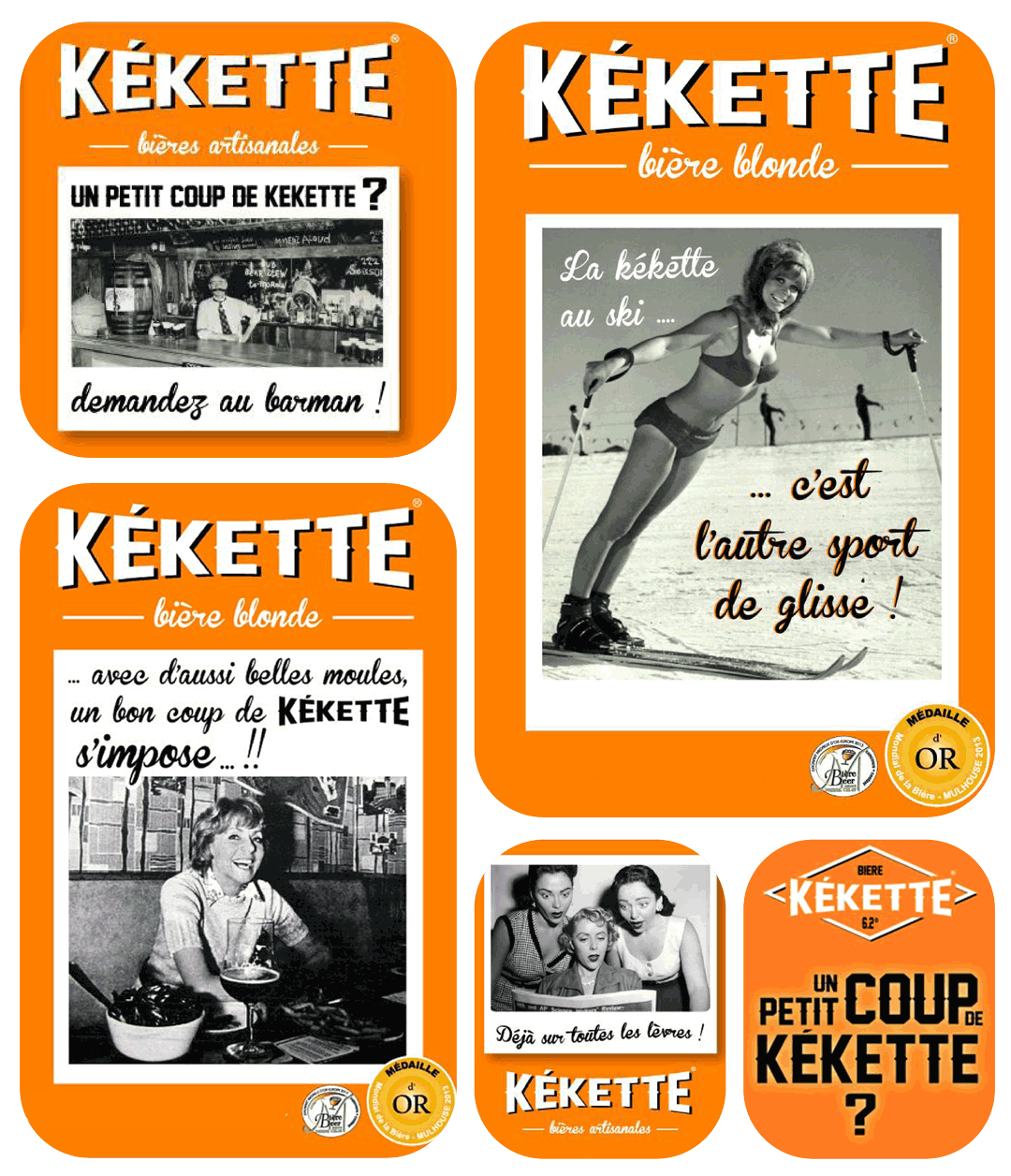 On est bien d’accord. Mais si on retire les œillères à kéké-boomers, on ne peut nier que l’ascension de « kékette » est fulgurante. Les jeux de mots douteux ont ouvert au plan marketing une autoroute pavée de stickers, badges, affiches, cartes postales, et autres posts viraux sur les réseaux sociaux. Et le slogan : « Vous prendrez bien un petit coup de kékette ? » déguise une injonction à consommer à laquelle les prétendant(e)s ne manquent visiblement pas. La mousse a trouvé son public, car on peut rire de tout tant que ça vend.