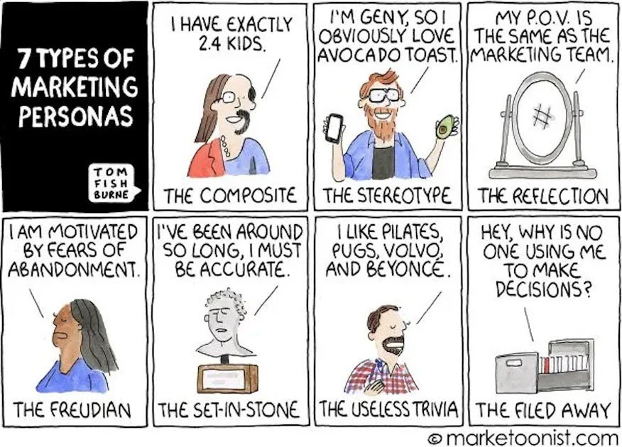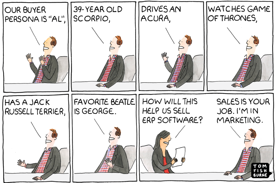 Tom Fishburne – qui ne tarit pas de LOLs sur le sujet – renchérit: «Au mieux, les personas aident à visualiser et communiquer des insights issus de la recherche. Au pire, elles sont déconnectées du monde réel et mettent de côté les vraies gens». L’une des raisons de ce biais est que les personas en disent davantage sur ceux qui les créent que sur ceux qu’elles sont censées représenter.