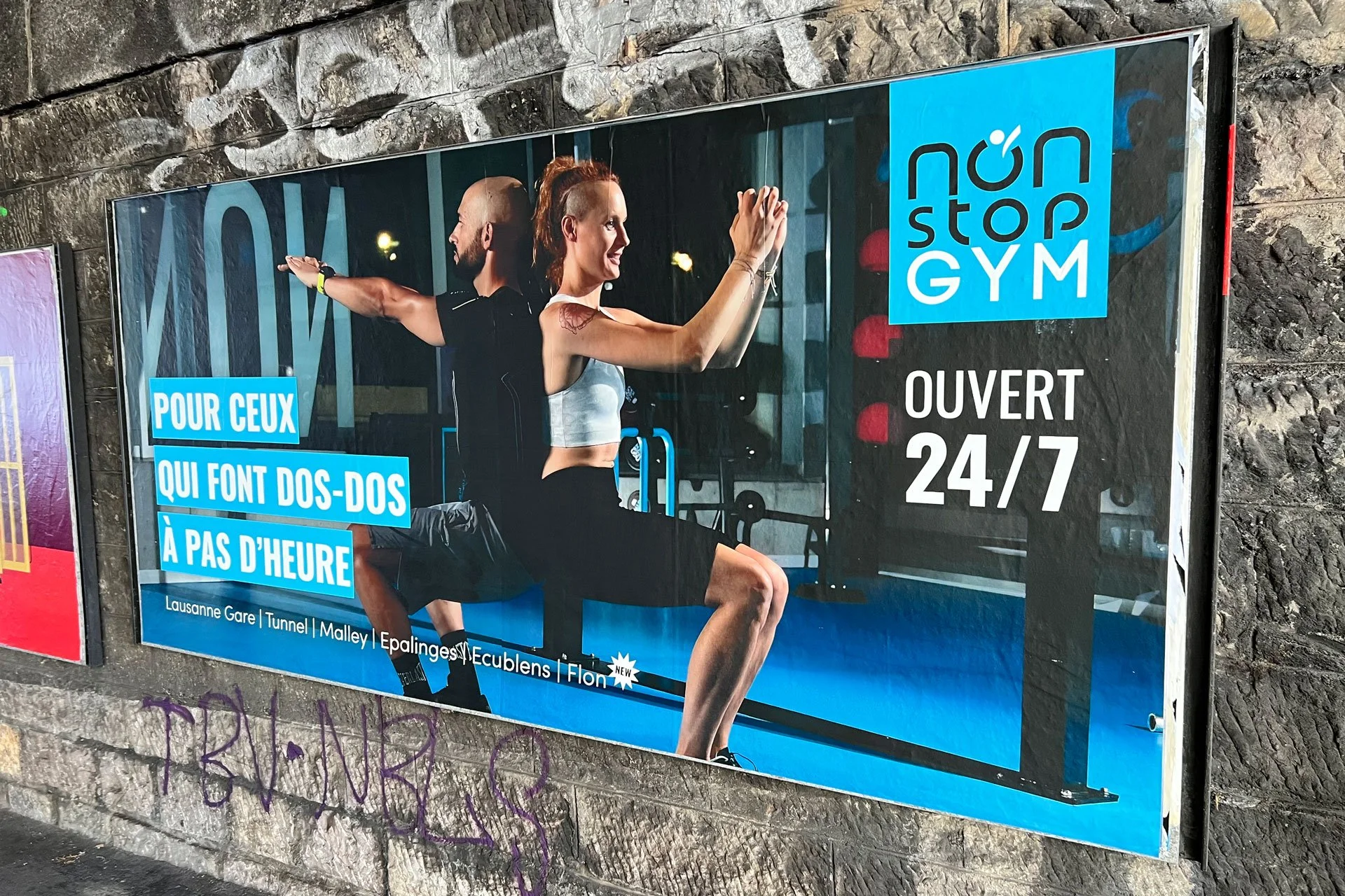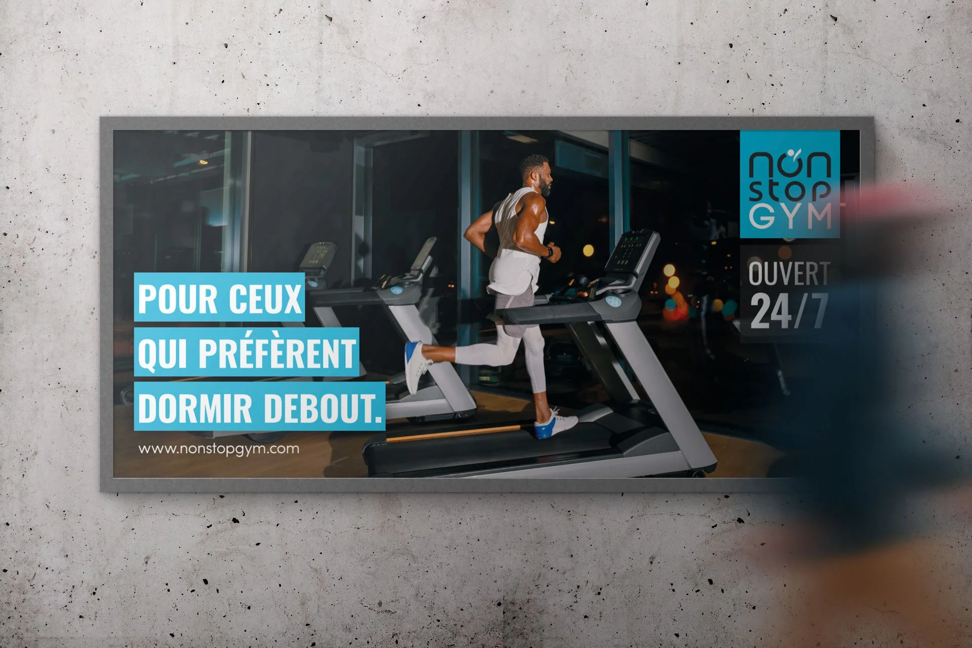 La chaîne NonStopGym est présente dans toute la Suisse et, comme son nom l’indique, ouvre ses vestiaires 7/7jours, 24/24h, 365/365. Pour augmenter sa notoriété, j’ai pu imaginer avec Creatives une campagne multicanale qui a eu de belles retombées en national.